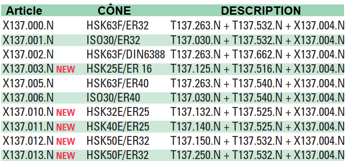- Disponible pour chaque cône de porte-outils et pinces de serrage à ressort.