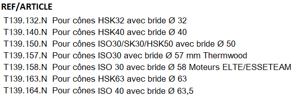 • Disponible pour tous types de cônes (HSK32, HSK40, HSK50, HSK63, ISO30 et ISO40).