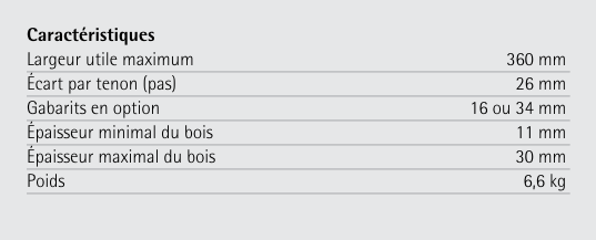 Gabarit de précision pour l'assemblage de tiroirs. Réglage micrométrique de chauqe côté du gabarit permettant un bon centrage de l'assemblage. Décalage automatique des 2 parties à assembler. Possibilité de serrer plus ou moins l'assemblage en fonction de la qualité des bois utilisés. Gabarit à queues d’aronde (accessoire pour FR66P, AS93, CA66F, FR277R et FR278R)