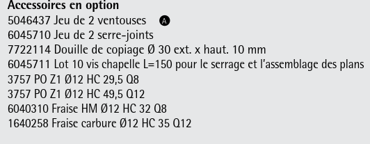 La fixation du gabarit est réalisée à l’aide de serre joints ou de 2 ventouses minimum réf. 6045699 (en option).
