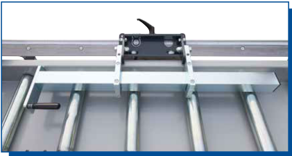 - Rouleaux acier zingués Ø 60 mm, épaisseur 2 mm, montés sur roulements ou rouleaux PVC Ø 63 mm, épaisseur 3 mm, axe Ø 15 mm