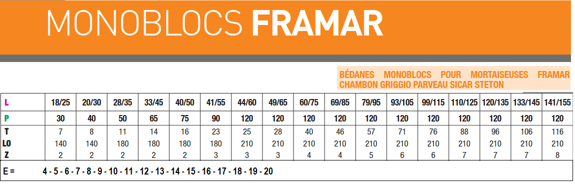 BEDANES MONOBLOCS POUR MORTAISEUSE "FRAMAR..."