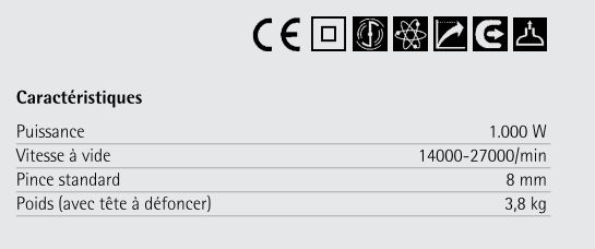 Sa capacité “COMBI” le permet travailler avec des differents types de têtes, bien comme défonceuse ou comme affleureuse. Toutes les têtes adaptables ont une buse d'aspiration.