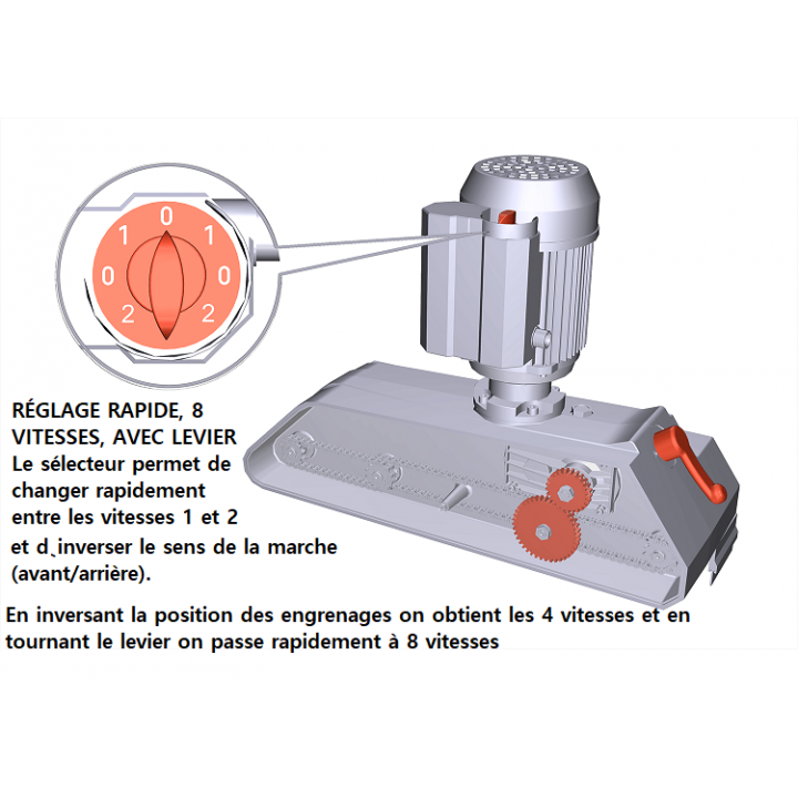 RÉGLAGE RAPIDE 8 VITESSES AVEC BOÎTE DE VITESSES
