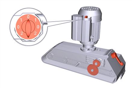 Le commutateur sur le moteur permet de changer rapidement les vitesses 1 et 2 et de faire marche arrière.