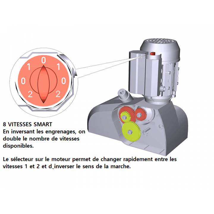 - Vitesses fixes 3.2 - 6.3 - 8.3 - 12.5 - 16.7 - 25 - 32 - 63 mt/min