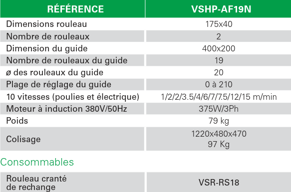 ENTRAINEUR DE REFENTE VSHP-AF19N à 2 rouleaux et 10 vitesses.