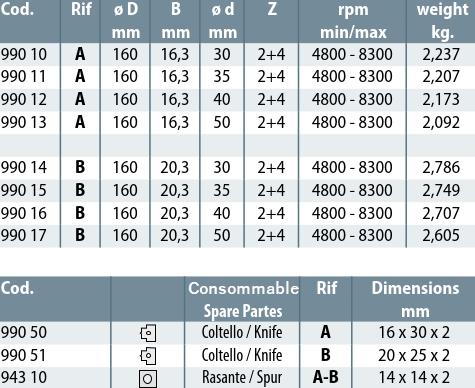 - OUTILLAGES POUR CORROYEUSES, MOULURIERES ET TENONNEUSES