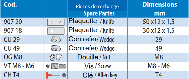 - OUTILLAGES POUR CORROYEUSES, MOULURIERES ET TENONNEUSES