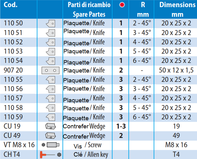 - OUTILLAGES POUR CORROYEUSES, MOULURIERES ET TENONNEUSES