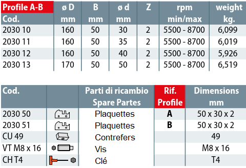 - OUTILLAGES POUR CORROYEUSES, MOULURIERES ET TENONNEUSES
