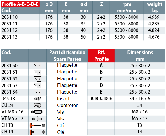 - OUTILLAGES POUR CORROYEUSES, MOULURIERES ET TENONNEUSES