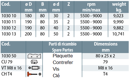 - OUTILLAGES POUR CORROYEUSES, MOULURIERES ET TENONNEUSES