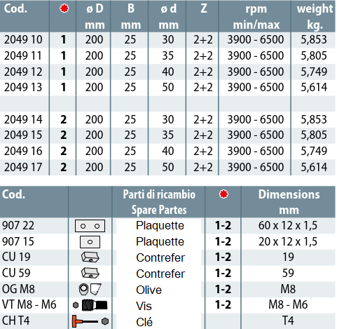- OUTILLAGES POUR CORROYEUSES, MOULURIERES ET TENONNEUSES