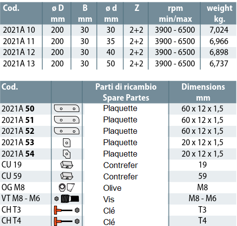 - OUTILLAGES POUR CORROYEUSES, MOULURIERES ET TENONNEUSES