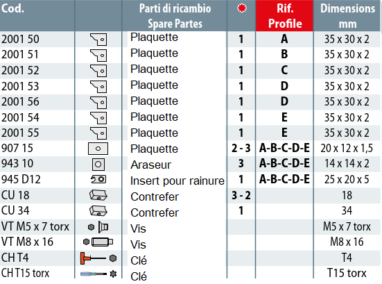 Plaquettes de rechange pour la rainure vendues par 2 unités (prix pour les 2 plaquettes)