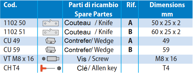 - OUTILLAGES POUR PLAQUEUSES DE CHANTS