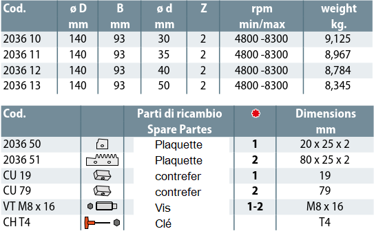 - OUTILLAGES POUR CORROYEUSES, MOULURIERES ET TENONNEUSES