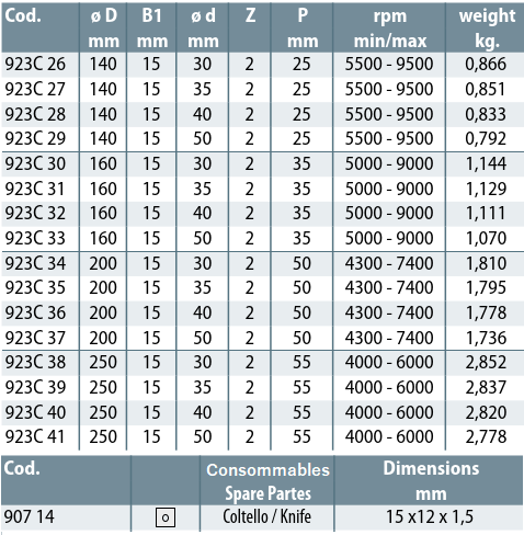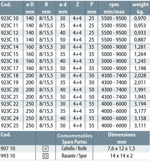 - OUTILLAGES POUR CORROYEUSES, MOULURIERES ET TENONNEUSES