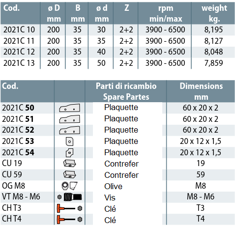 - OUTILLAGES POUR CORROYEUSES, MOULURIERES ET TENONNEUSES