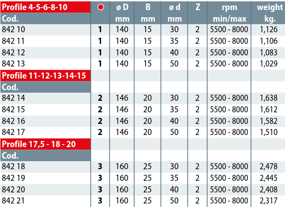 - OUTILLAGES POUR CORROYEUSES, MOULURIERES ET TENONNEUSES
