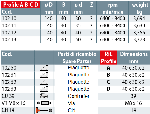 - OUTILLAGES POUR CORROYEUSES, MOULURIERES ET TENONNEUSES