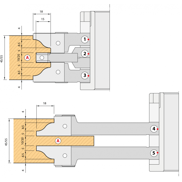 - OUTILLAGES POUR CORROYEUSES, MOULURIERES ET TENONNEUSES
