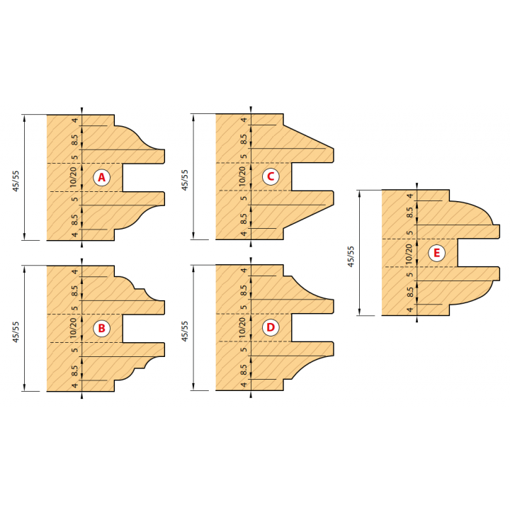 Lors de la commande, précisez un seul type de profil A - B - C - D ou E