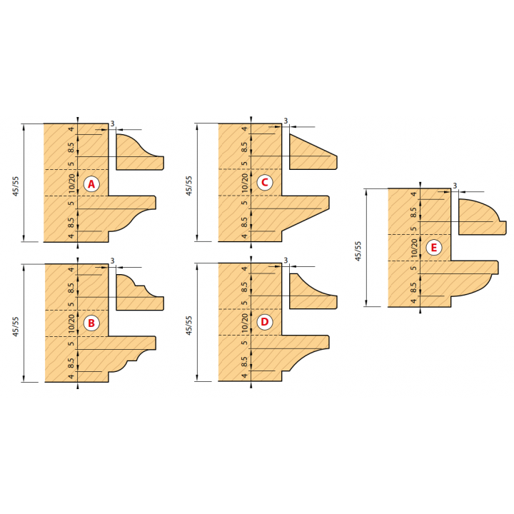 Lors de la commande, précisez un seul type de profil A - B - C - D ou E