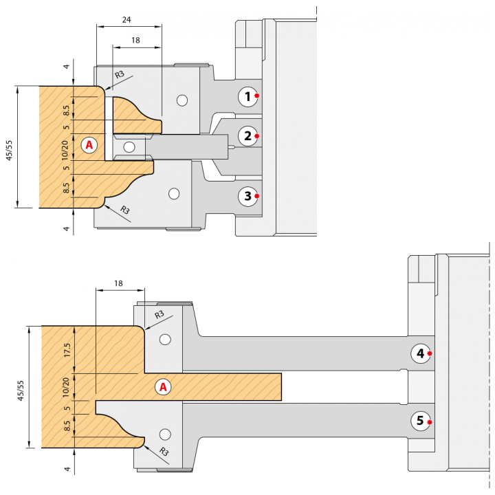 - OUTILLAGES POUR CORROYEUSES, MOULURIERES ET TENONNEUSES