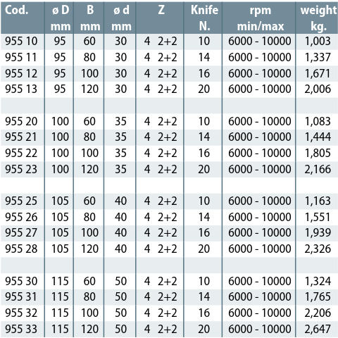 - OUTILLAGES POUR CORROYEUSES, MOULURIERES ET TENONNEUSES