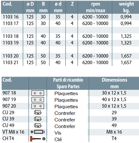 - OUTILLAGES POUR CORROYEUSES, MOULURIERES ET TENONNEUSES