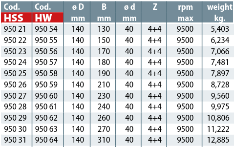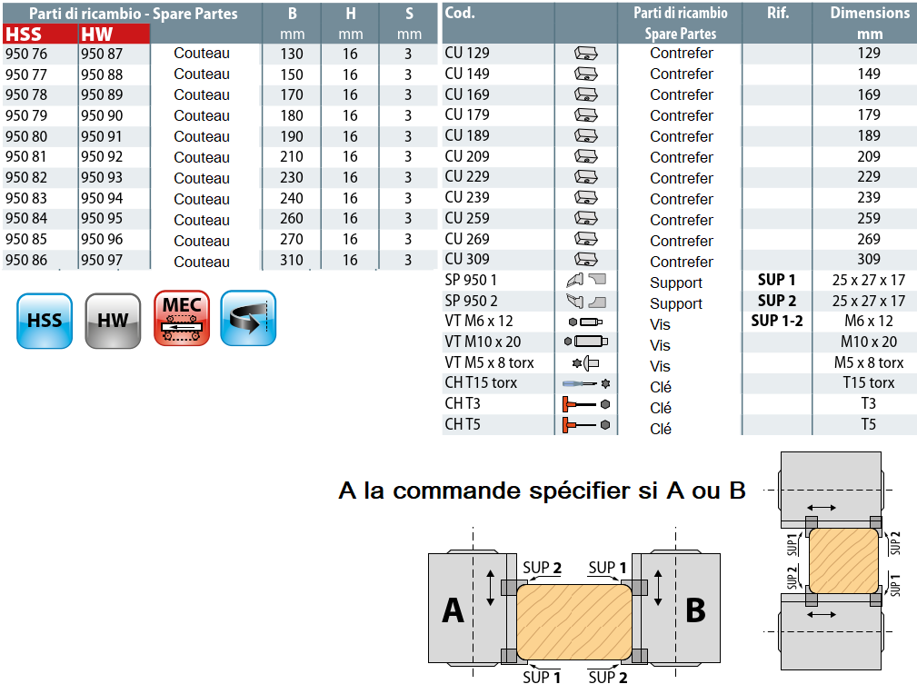 Sélectionner les couteau de corroyage en HSS ou en HW.