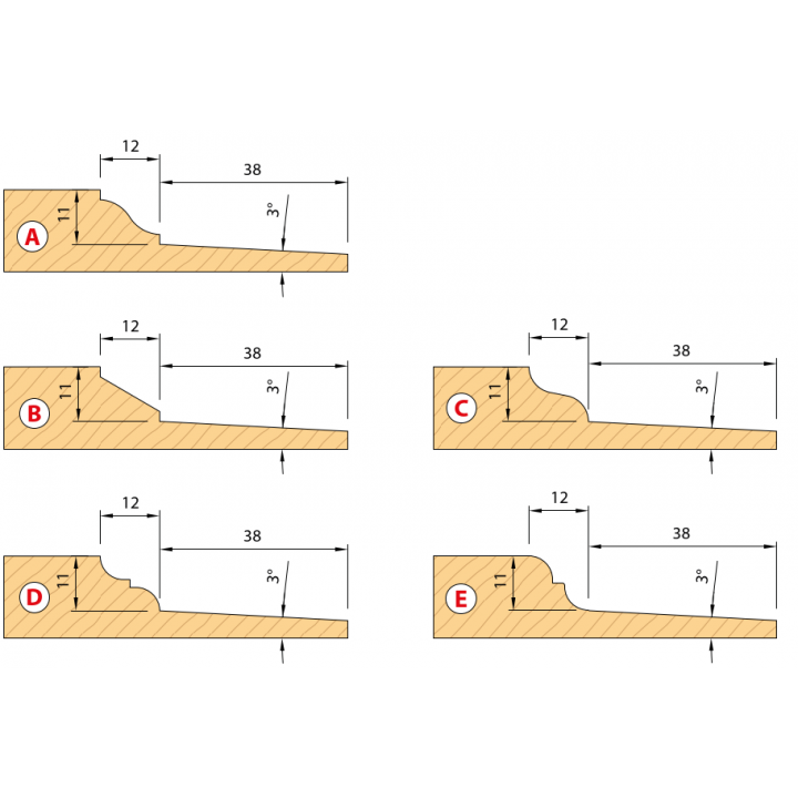 Fraise pour profil platebande, 5 profils possibles avec un seul outil.