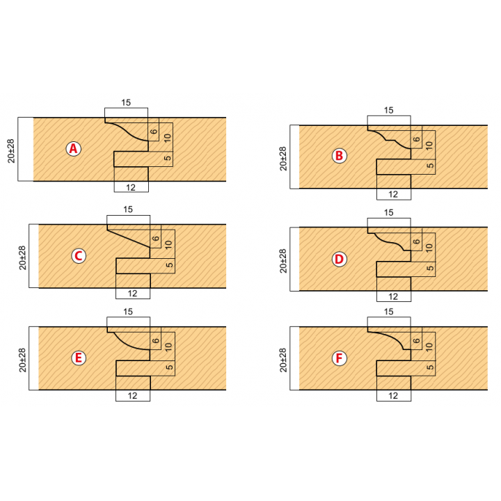 Fraise pour l'usinage du profil et contre-profil des portes de meubles avec queue de Ø20 mm