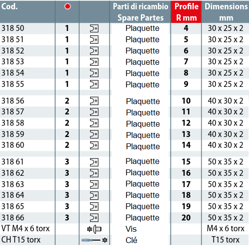 Fraise pour rayon de 4 à 20 mm avec queue de Ø20 mm