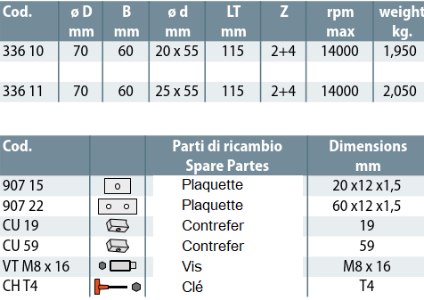 - OUTILLAGES POUR CORROYEUSES, MOULURIERES ET TENONNEUSES