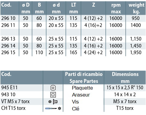 Les plaquettes ont un rayon de 150 pour permettre une coupe progressive et sans trace.