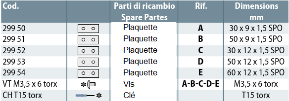 Plaquettes 299 52 (Z055.430.N) en boite de 10 pièces (prix pour la boite)