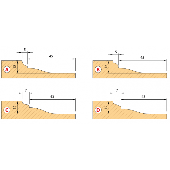 Fraise pour profil platebande, 4 profils possibles avec un seul outil.