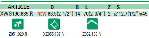 XWG190 FRAISE A PLAQUETTES DIAMANTS POUR CALIBRAGE ET SURFACAGE