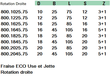 Cette gamme vous permettra de garder le bénéfice du diamant lors des usinages avec un prix d'achat très compétitif, plus d'affutage à faire donc des économies et une diminution importante du budget outillage.