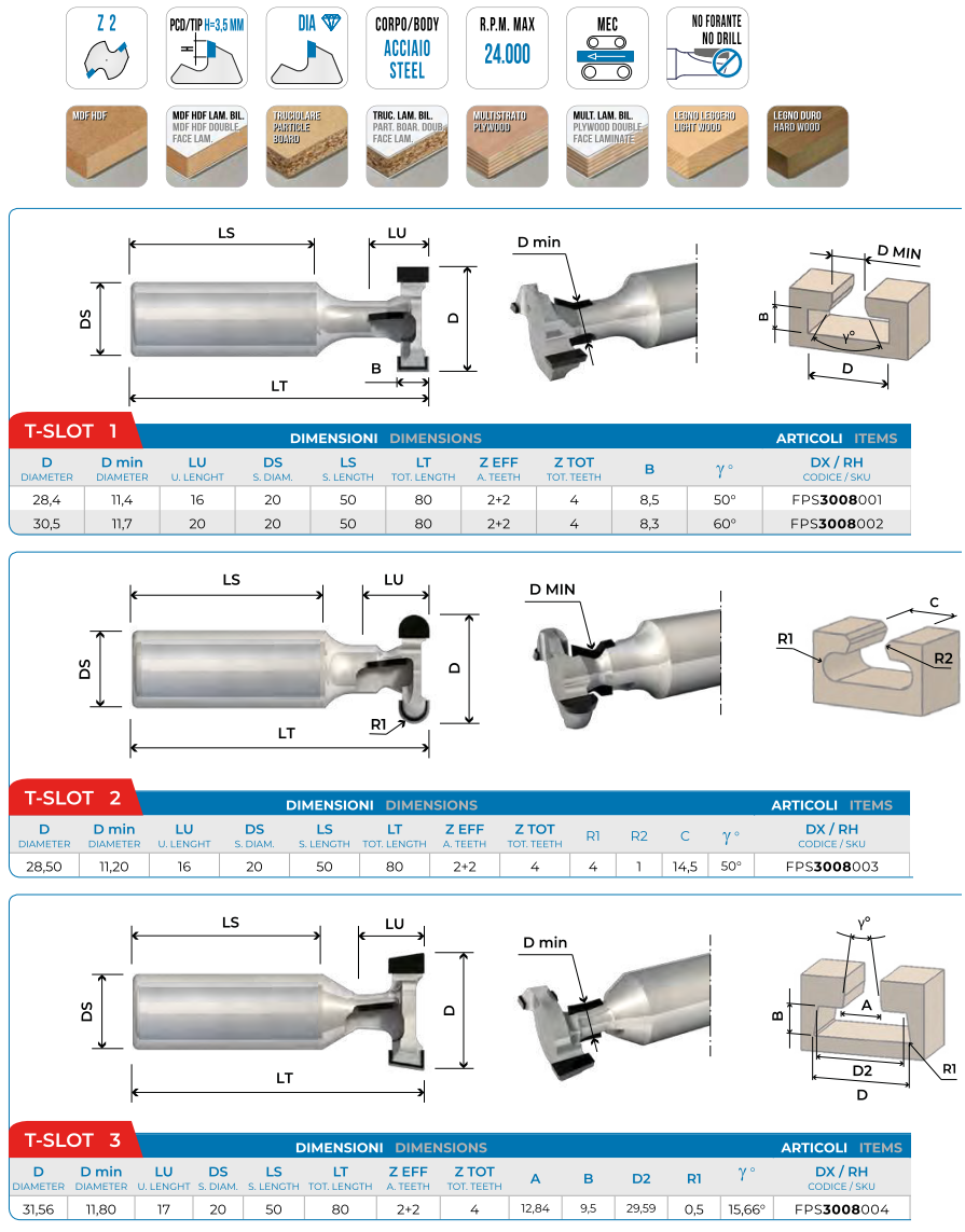 - FRAISE DIAMANT EN "T" Z2+2 POUR PROFILS EN ALUMINIUM