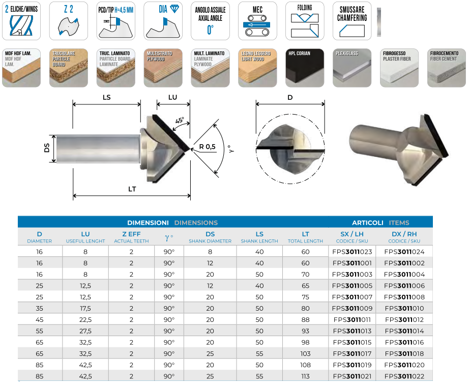 - Corps en acier. plaquettes diamants réaffûtable pour une longue durée et pour assurer une finition parfaite sur panneaux MDF, HDF, aggloméré, OSB, contreplaqué multicouche, bois tendre, corian, plexiglas, fibre de verre et fibrociment.