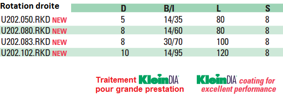 FRAISES U202 HS-E HÉLICOÏDALES POUR ALUMINIUM Z1 TYPE LONG KleinDIA®