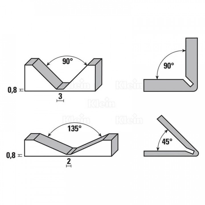 - Nos fraises (voir article U180) sont particulièrement adaptées à la réalisation de pliages en V sur l'Alucobond® et autres matériaux sandwich. Spécialement conçues pour le rainurage des matériaux ACM avec des angles de 90° et 135° (avec fond plat), permettant ainsi une opération de pliage manuelle simple du panneau sans fissuration.