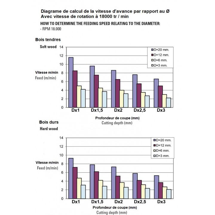 - Pour bois tendres et durs, panneaux de particules, MDF, HF, lamellés, thermoplastique, matériaux minéraux (CORIAN®, etc)