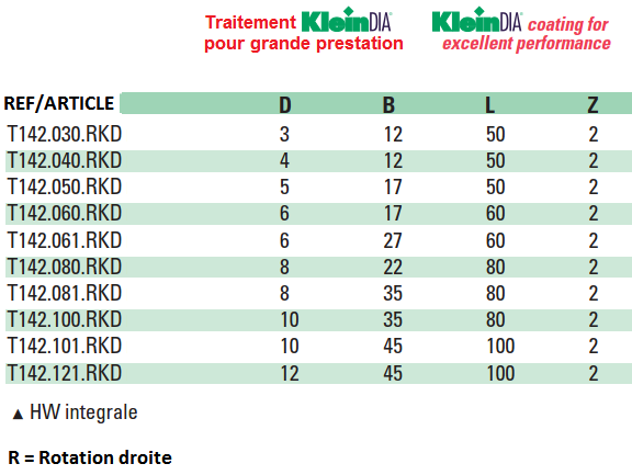 - FRAISES HW AVEC TRAITEMENT DLC (Diamond Like Carbon)