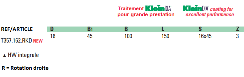 • Tranchant rodé et recouvert pour moins de friction et pour une meilleure évacuation des copeaux. Très hautes performances