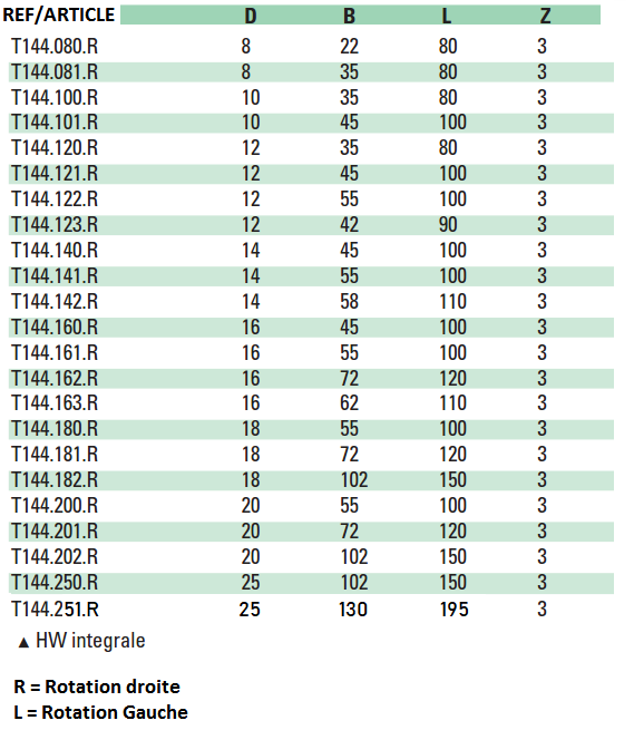 T144 FRAISES HW EBAUCHE Z3 (Rot.Droite Tirant)
